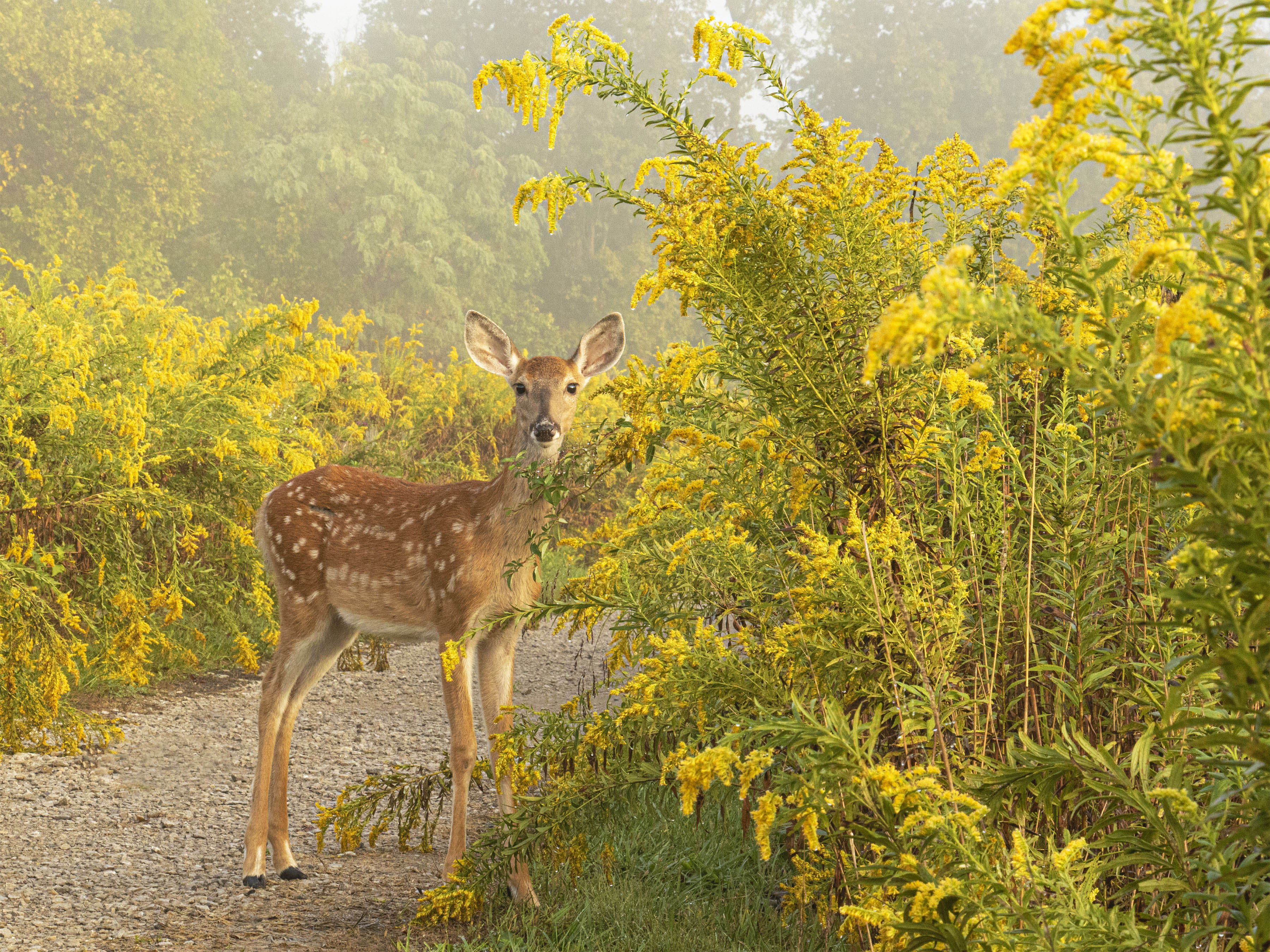Behind the Shot: It was late September and I had just arrived at the Nature Center—right as it opened. I normally like to check out the Pollinator Garden when first arriving. On my way to it, I noticed this yearling doe standing along the gravel path in a field of goldenrod. I was photographing that field with my Canon 18-135 mm lens and kept it on while taking pics of the deer. A lot can happen when you change a lens & definitely didn’t want to miss this shot. She was very cooperative and I came away with some memorable pictures—as well as memories that will last a lifetime! I’ve seen a lot of beautiful wildlife and scenes in the eight years that I’ve been a member. Every year brings something new and exciting!