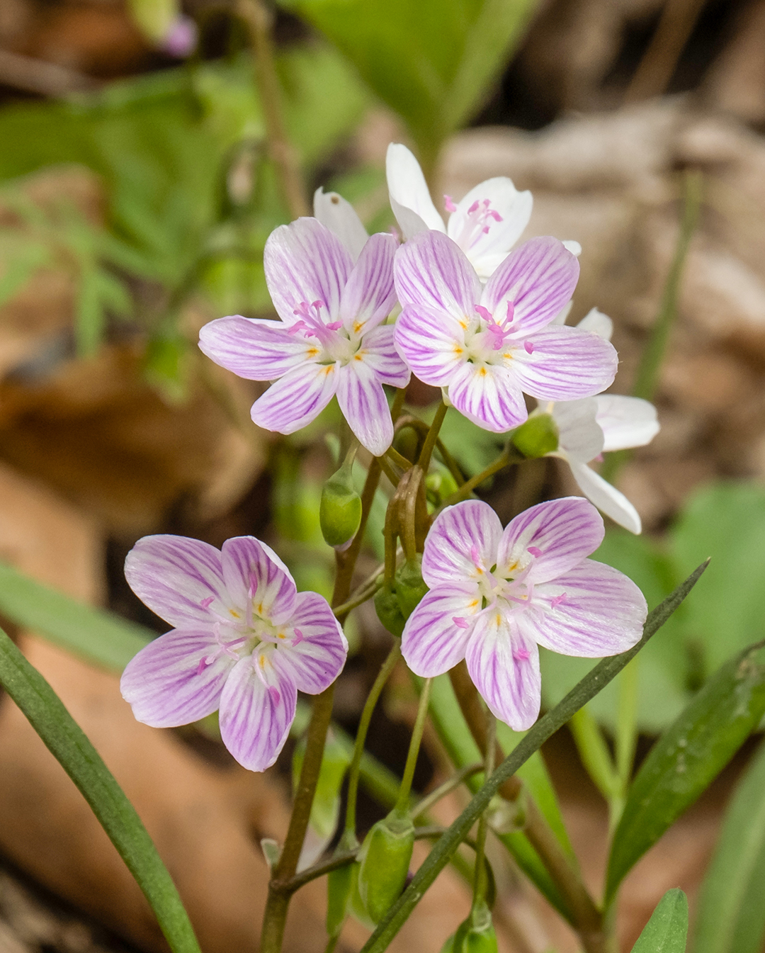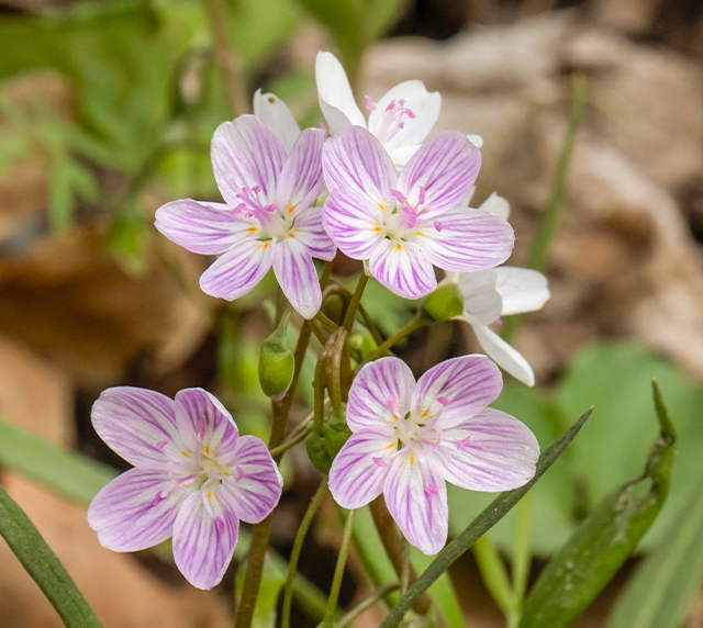 One of the most significant ecological benefits of native plants is their role in supporting pollinators. Many of our native bees, butterflies, and moths have co-evolved with specific plant species. These relationships are often highly specialized; some insects can only reproduce using certain native host plants. A prime example can be found with one of our most common spring ephemeral wildflowers, the spring beauty, Claytonia virginica. Aptly named, the spring beauty miner bee (Andrena erigeniae) only collects pollen for its larvae from spring beauty blooms. Emerging in the spring before the flowers, female bees quickly get to work digging brooding chambers in loose, loamy soil like that found under the leaf litter (yet another reason to leave the leaves in the fall!). Once spring beauty is in bloom, they have only this brief couple of weeks to collect all the pollen they can, the life cycle of the adult bees tied intricately to the bloom period of the flower. Each egg is laid in its own chamber and gets its own cake of pink spring beauty pollen. Through the rest of spring and summer the larvae will eat this pollen and pupate. By late fall they develop into adults and wait out the winter underground in there chambers, emerging in early spring to start the cycle over again.